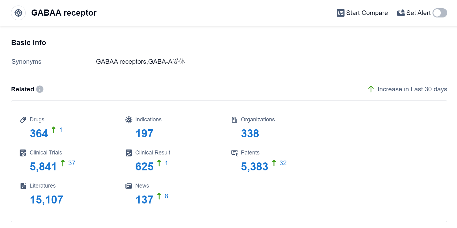 According to Patsnap Synapse, as of 10 Sep 2023, there are a total of 364 GABAA receptor drugs worldwide, from 338 organizations, covering 197 indications, and conducting 5841 clinical trials.