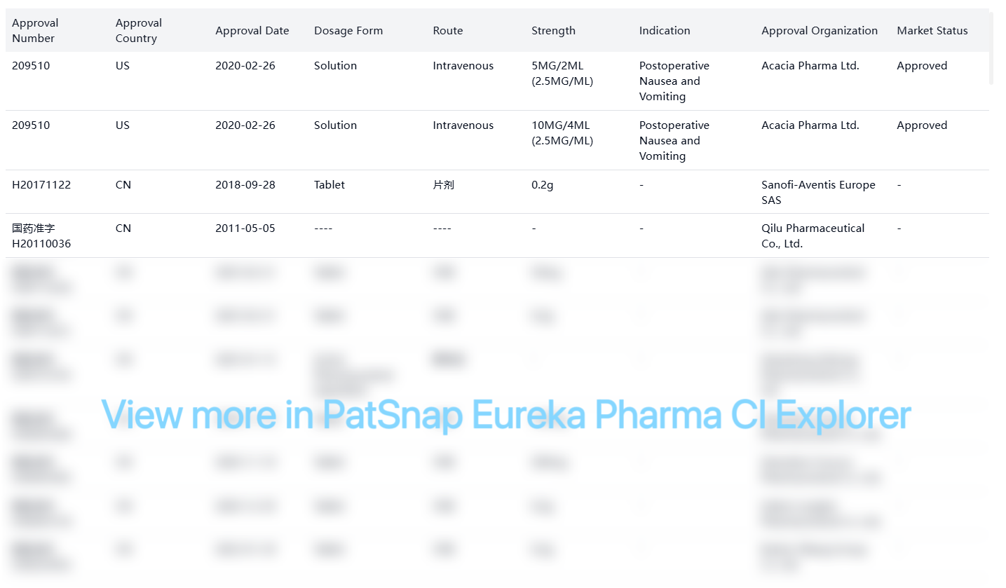 US Market: Highly restricted due to multiple active patents extending to 2038 and potential regulatory exclusivity until 2025. The US market is narrowly focused on PONV indication.