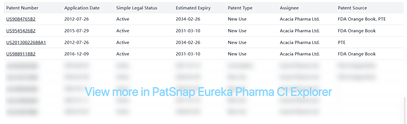 EU Market: Limited data available, but patents from Acacia Pharma Ltd. and Sumitomo Pharma America, Inc. may create barriers.