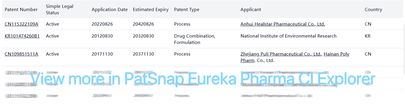 For more scientific and detailed information of Dobutamine Hydrochloride , try PatSnap Eureka Pharma CI Explorer.