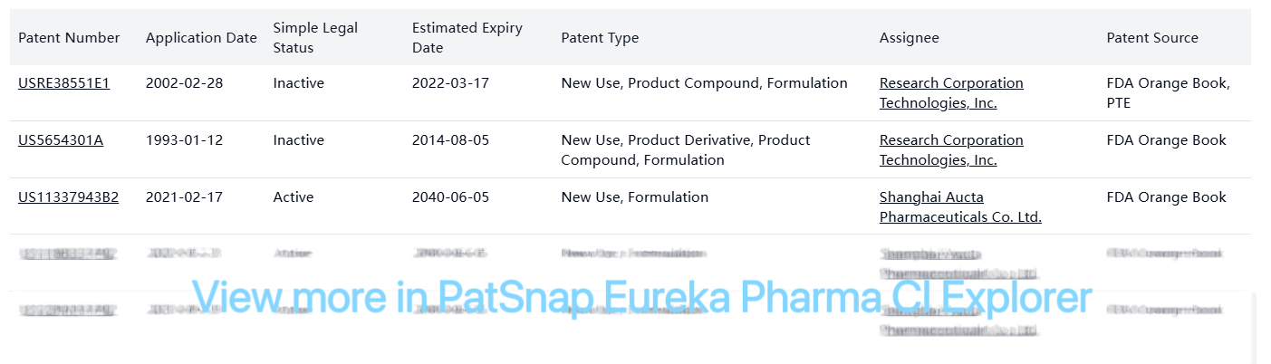 The patent landscape shows that while the original compound patents have expired, allowing for generic entry for the basic formulations, newer extended-release formulations by Aucta Pharmaceuticals have patent protection until 2040, creating a new exclusivity period for these specific formulations.