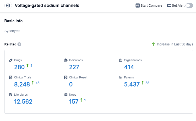 According to Patsnap Synapse, as of 7 Sep 2023, there are a total of 280 Voltage-gated sodium channels drugs worldwide, from 414 organizations, covering 227 indications, and conducting 8248 clinical trials.